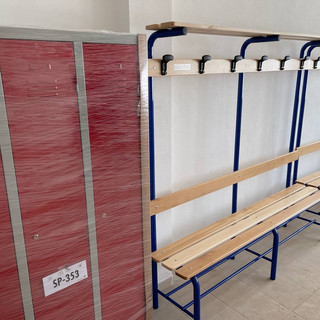 Nello specifico, abbiamo eseguito la fornitura e posa di impianto basket, impianto volley, porte calcetto, arredi spogliatoio completi e infermeria.